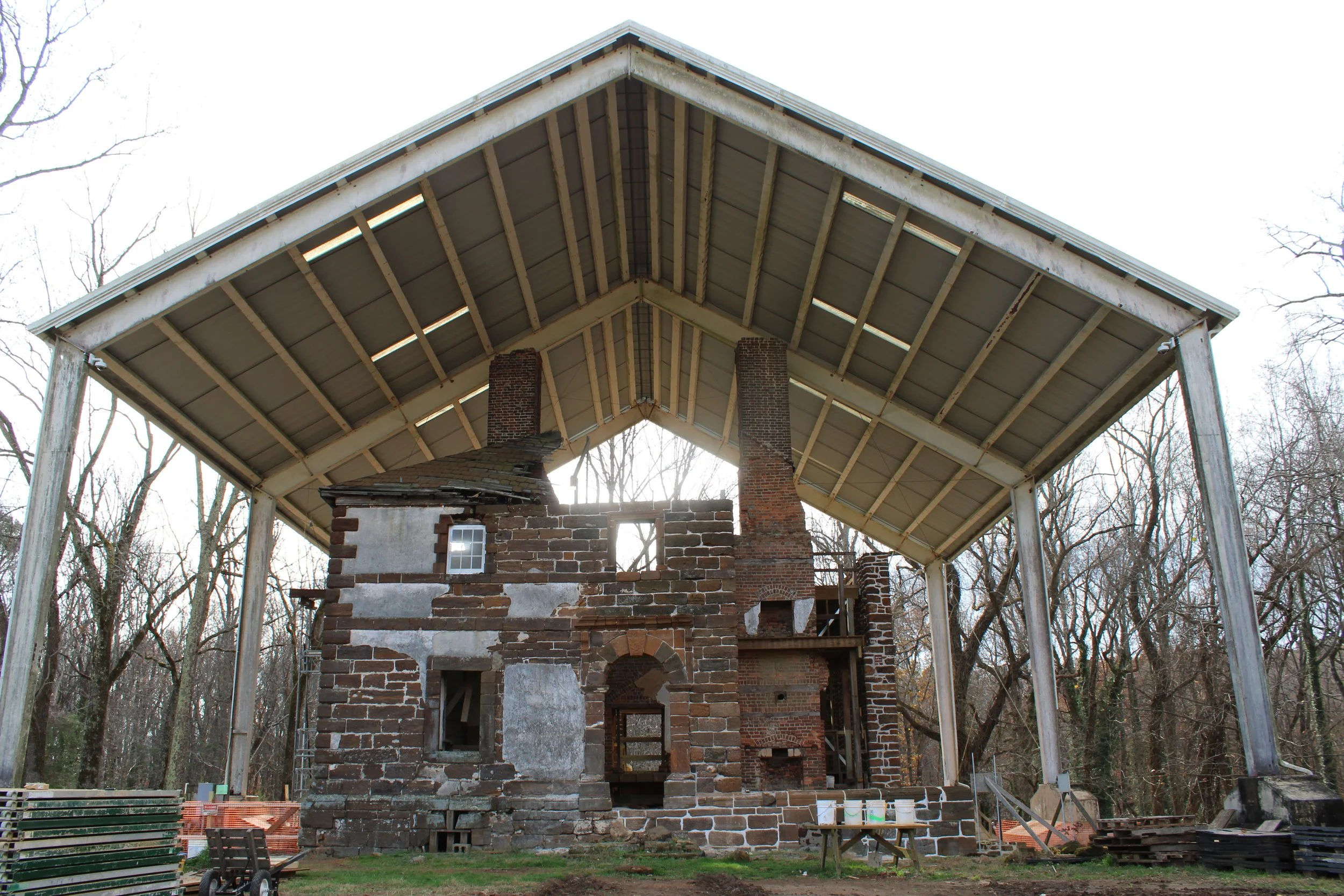 As of November 2025, the North wall along with the front entryway has been rebuilt! This work was done by the skilled stonemasons of Dominion Traditional Building Group with funding coming from the VA250 Preservation Fund and donations from our community.