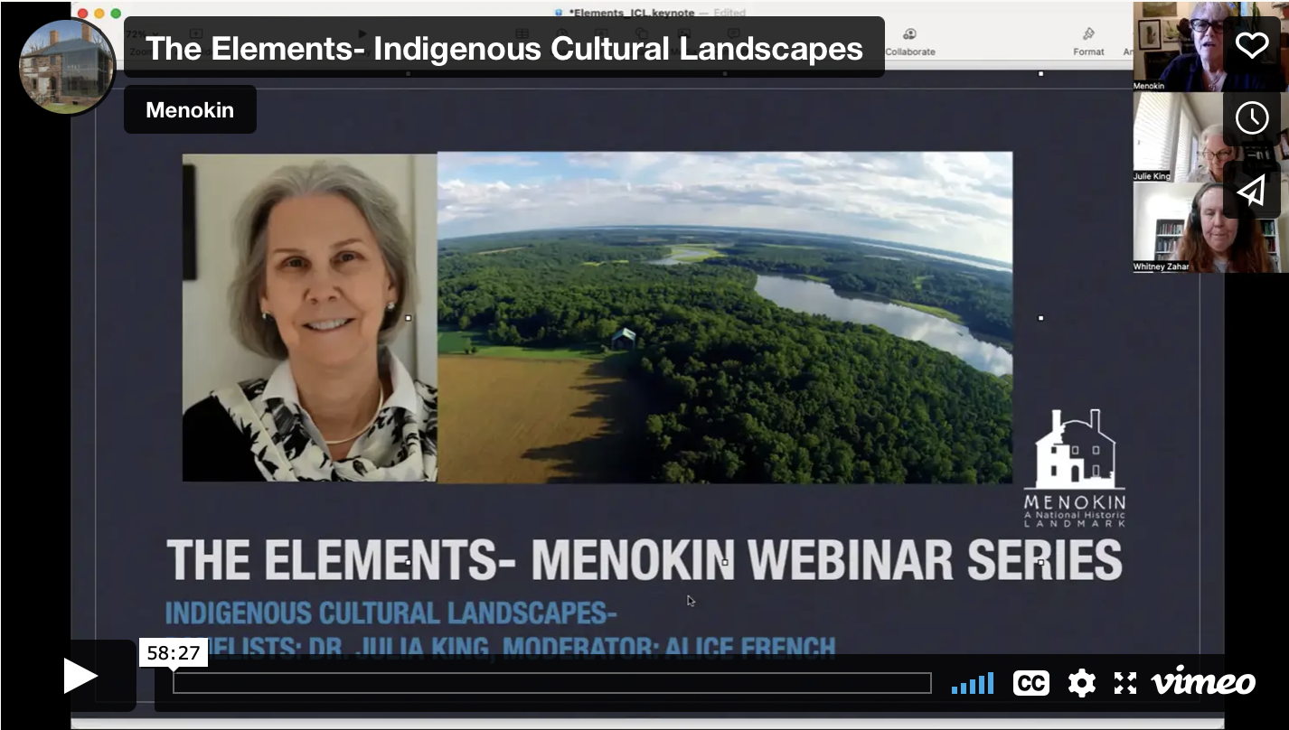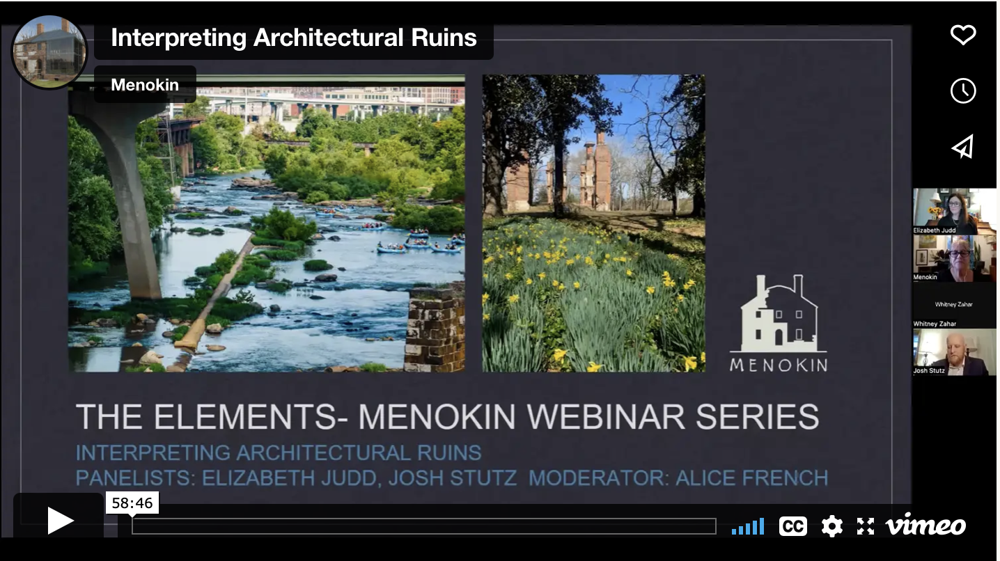 Menokin Premiered it lauded Elements Webinar Series in 2021 featuring thought leaders from across the spectrum of historical preservation, land use, sustainability in architecture, building trades and more.