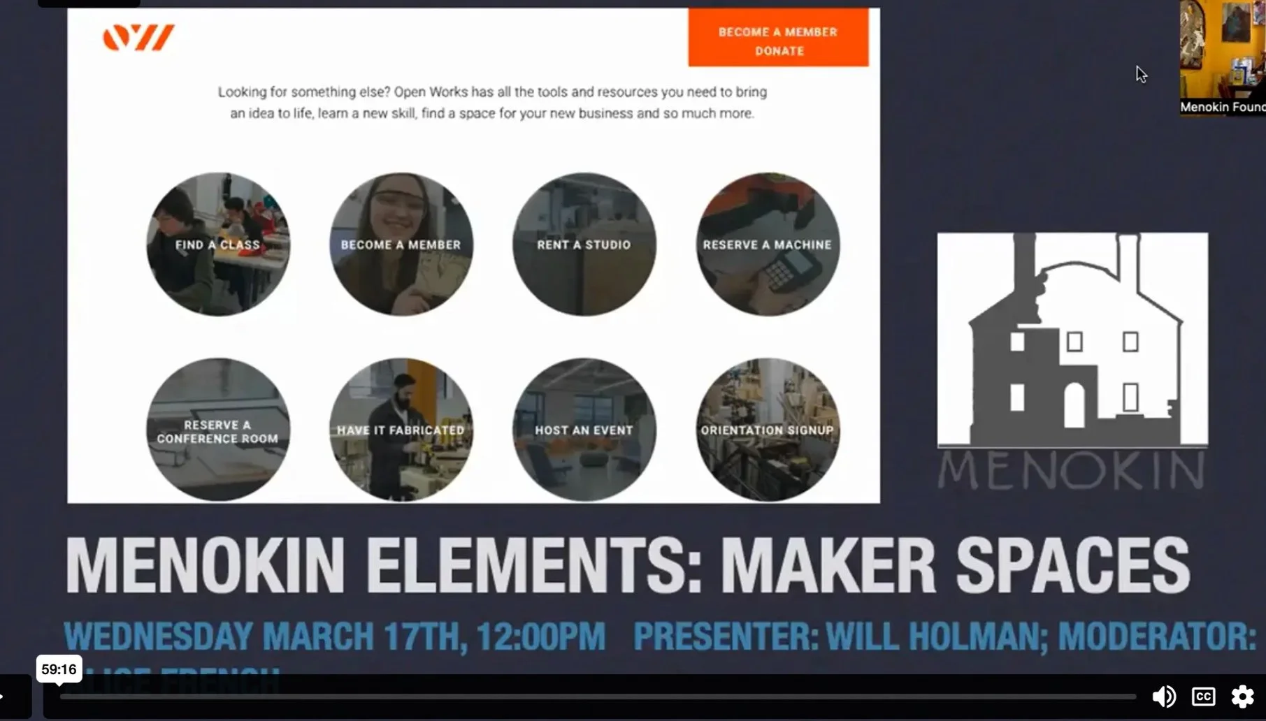 Our first Elements webinar of the season three is with Will Holman, Executive Director of Open Works kicking off this year’s theme of makerspaces. Makerspaces are vibrant environments designed to foster creativity, innovation, wellness and connection in our culture today. WATCH THE RECORDED SESSION HERE.